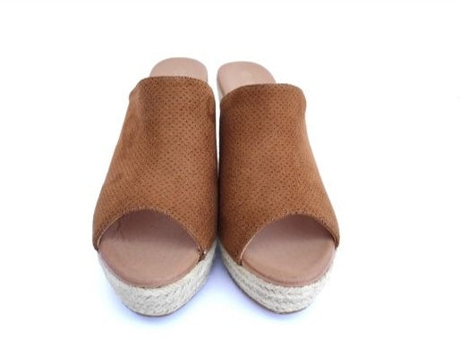 Camel color high wedge clog espadrille