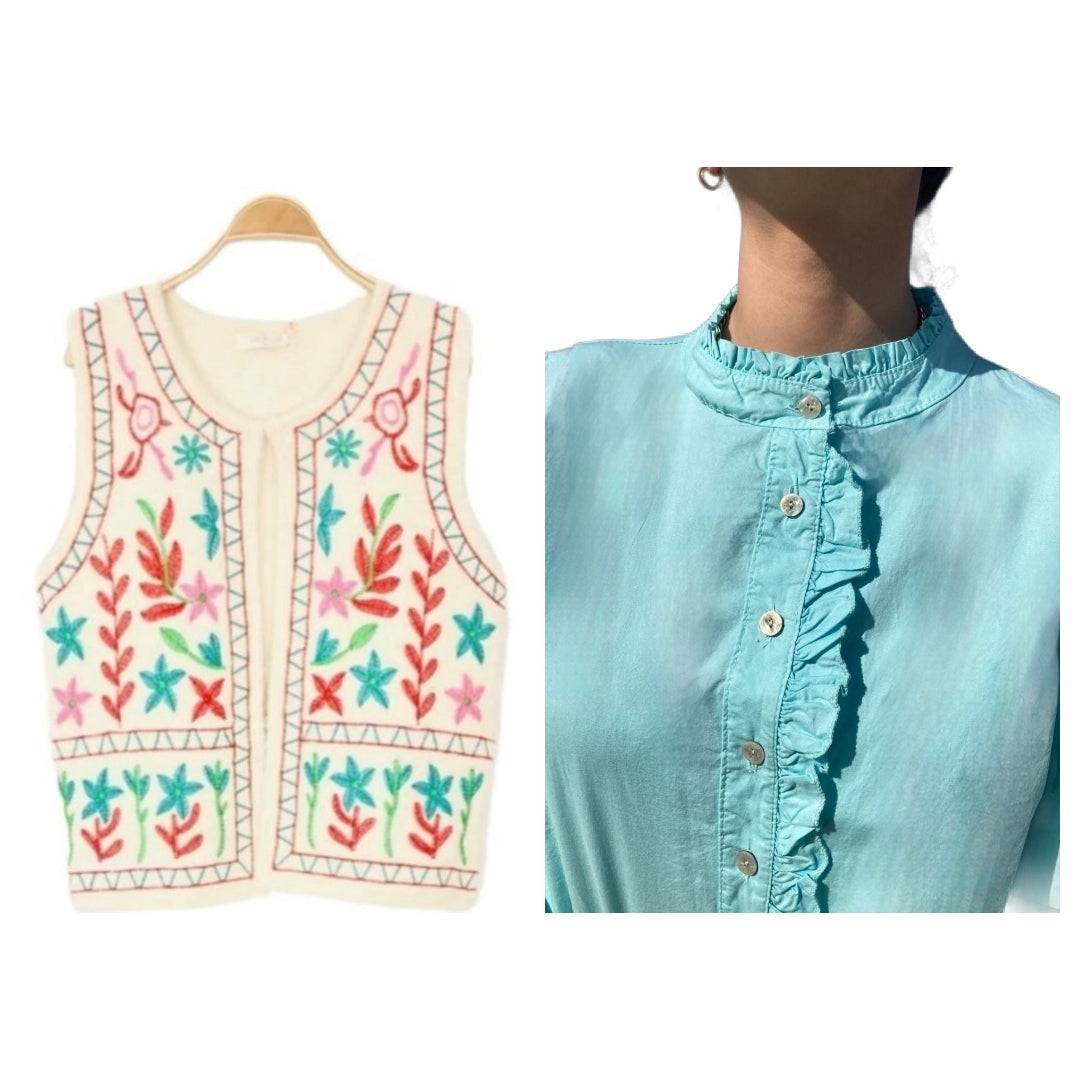 Only 1 green blouse available. 100% cotton, puffed sleeves. One size. Fits up to size 42