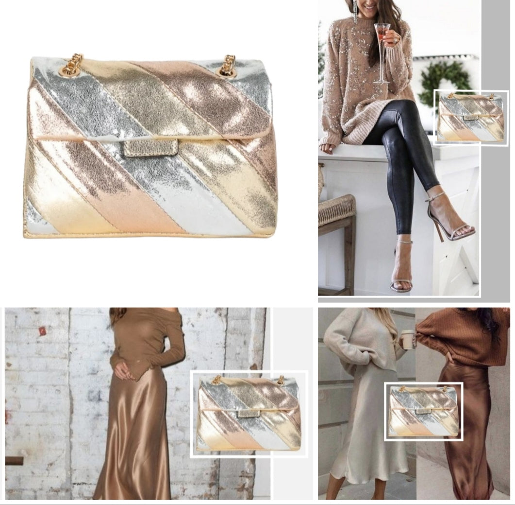 Beautiful metallic bag in GOLD, SILVER and CHAMPAGNE tones. Made of PU leather.