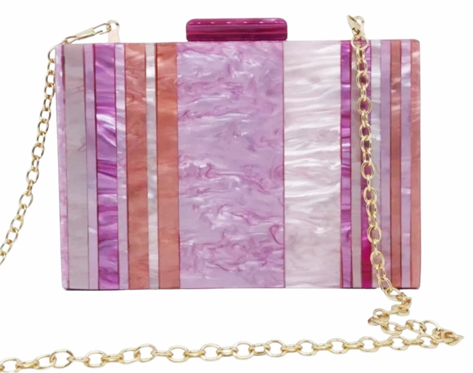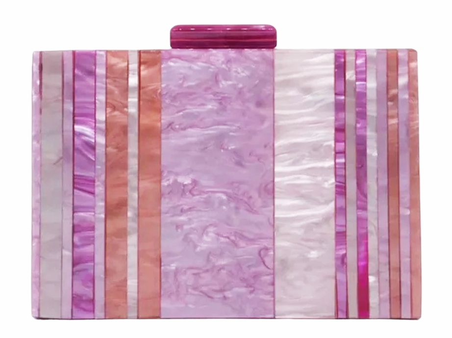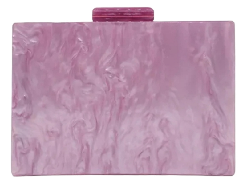 Rectangular bag decorated with acrylic panels of pearly pink and lilac colors