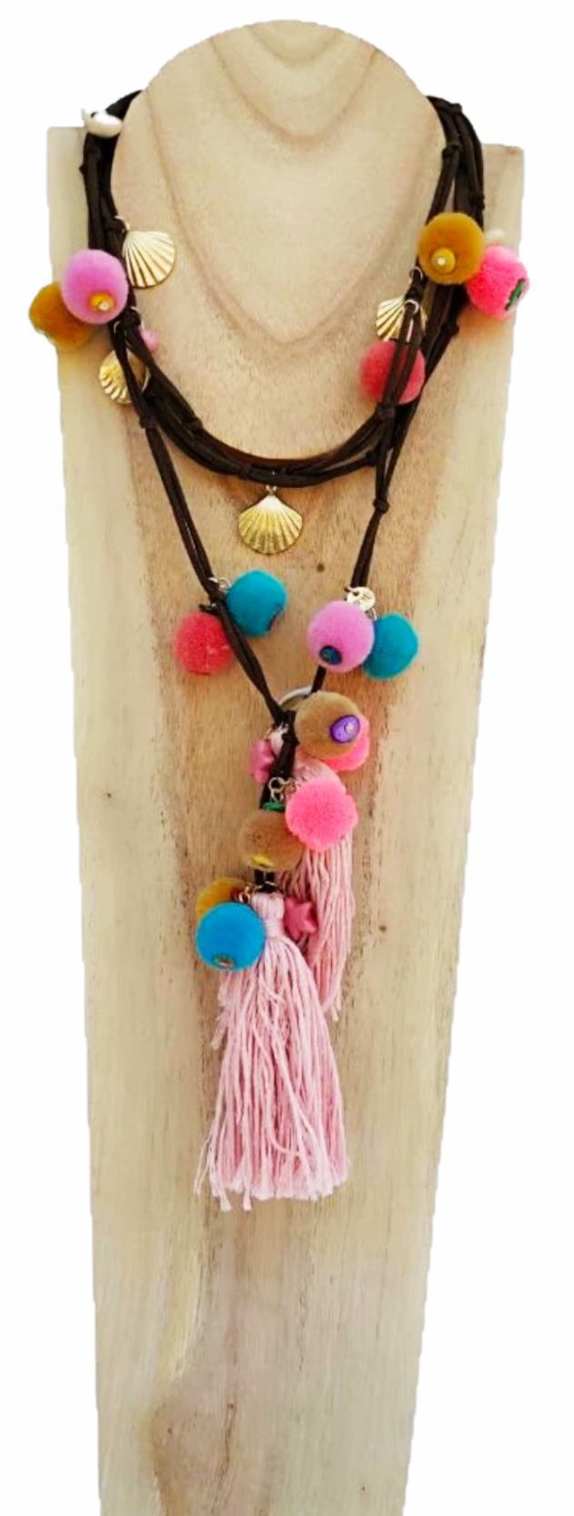Necklace with pompoms in pink tones