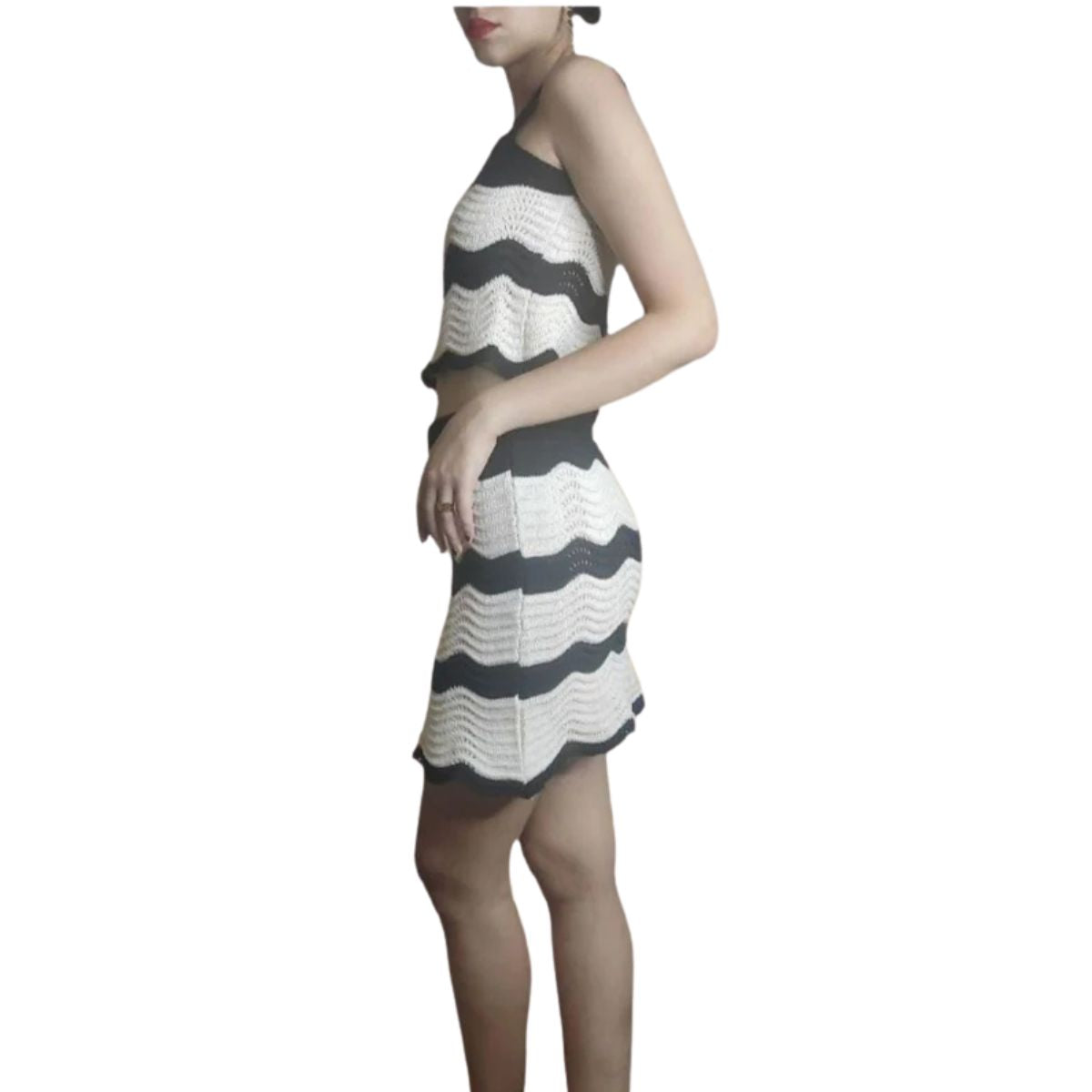 Long white cotton crochet skirt.