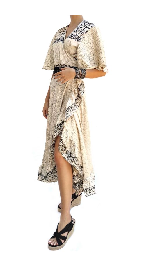 Vestido boho largo en color beige y negro (solo queda 1 unidad)