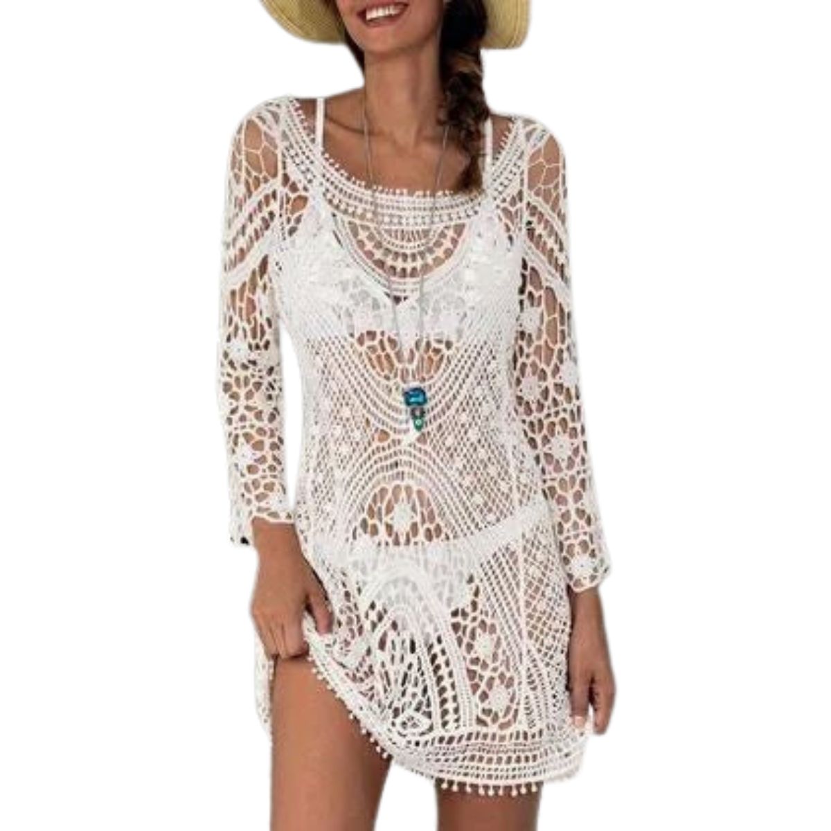 VESTIDO mod. IBIZA. Vestido corto de crochet blanco.